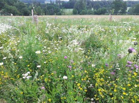 Das Monitoring in den Jahren 2023 und 2024 hat viele Erkenntnisse bezüglich Pflanzen- und Tierarten in den einzelnen Saatgutgruppen, der Einfluss der Pflege und der Anlagevariante gebracht. In Jaidhof hat sich z.B. gezeigt, dass einjährige Pflanzenarten zurückgegangen und dafür zwei- und mehrjährige Arten häufiger geworden sind. Dort wurden auch die Wildbienen-Arten in unterschiedlichen Flächen erhoben und seltene Arten, wie die Kamillen-Sandbiene oder die Platterbsen-Mörtelbiene als wichtiger Bestäuber gefunden. Für das Jahr 2025 ist eine Ist-Zustandserhebung zu Pflanzen- und Tierarten in der Region Murau geplant. Ab Mai/Juni 2026 sollen entsprechende Erhebungen wieder in allen Regionen stattfinden. Ergänzend dazu wird ein spezielles Monitoring des Rebhuhns durchgeführt, das jährlich im März ausschließlich in Probstdorf stattfindet.